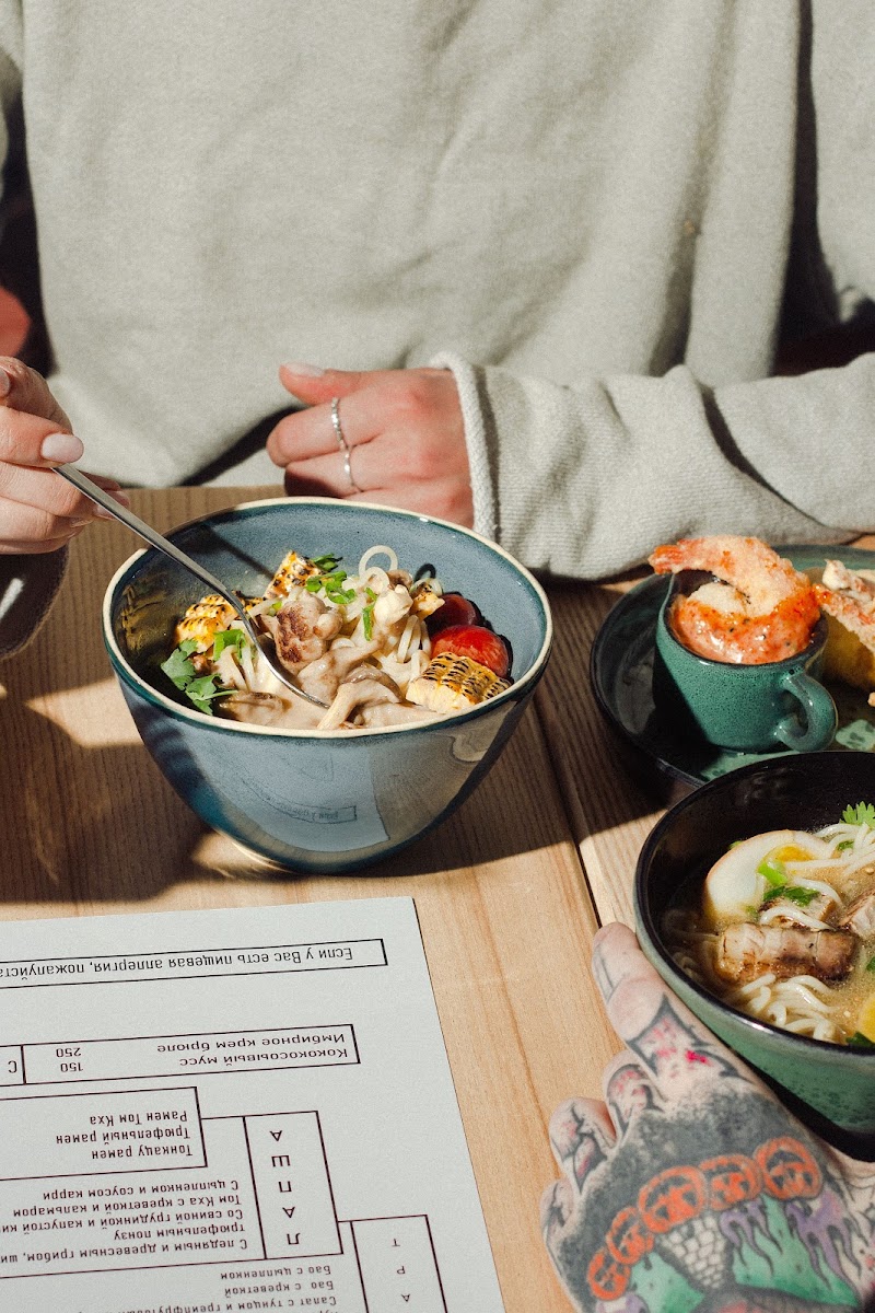 Customers rave about their experiences. Paylo Belov highlights the “великолепное место” (magnificent place) saying “супы лапша отличные” (the noodle soups are excellent) and appreciates the unique flavor combinations. Another visitor, Alexsandra Kulikova, expresses her delight with the friendly service, noting how the dark tempura mushrooms paired with her refreshing espressotonic created an unforgettable dining moment. The atmosphere at the cafe is vibrant yet cozy, making it ideal for a relaxing lunch or a delightful dinner, with the promise of great food and engaging conversations.